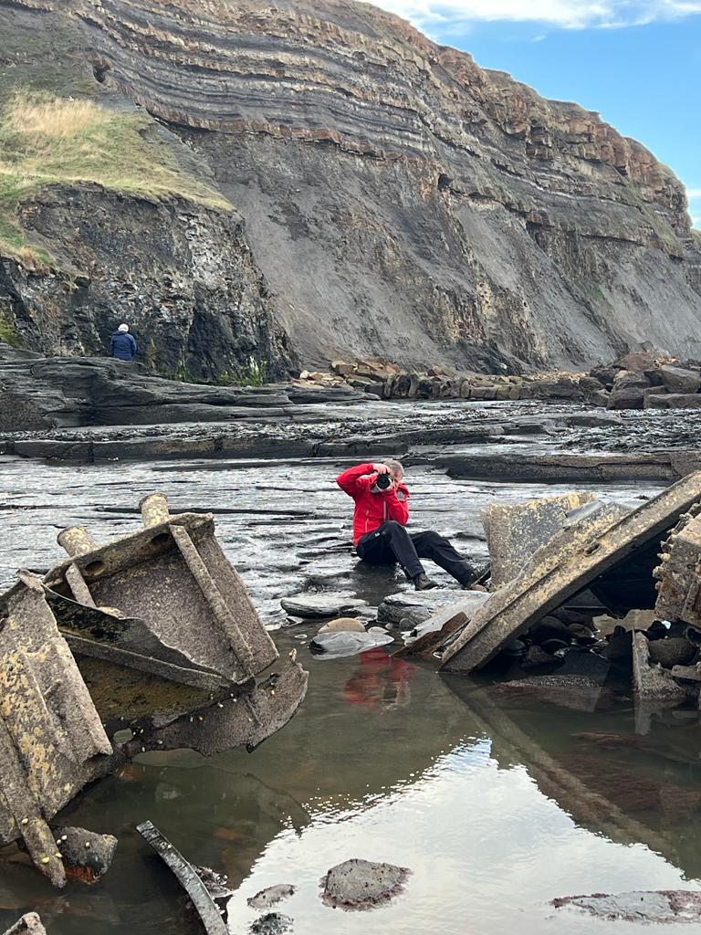At Runswick Bay and Sandsend beach, we were treated to a new technique of how to get down and dirty, without getting down and defiantly not getting dirty. Chris Calverley showed us a new technique of using your phone to shoot between your legs, with your back to the subject. We did look at him in a funny way to begin with, but after having a go ourselves, we could actually see the benefits (on our phones of course). This technique allows you to get your phone down very low to get reflections and look at things from a different angle, without having to get down on your knees or laying on the ground. Some would say it’s easy to get down on the ground to take a photo, but the problems get very real when you try to get back up (we’re not spring chickens). We were also introduced by one of the group to a phone app which converts your images into works of art by old masters. Some members loved the new app, and it just goes to show it’s not about what you use to take a photo, but what enjoyment you get out of taking them and sharing your experience with others. Of course we have what people would call proper cameras (Mirrorless and DSLRs), but phones have their place in photography as they are just another way to capture images.