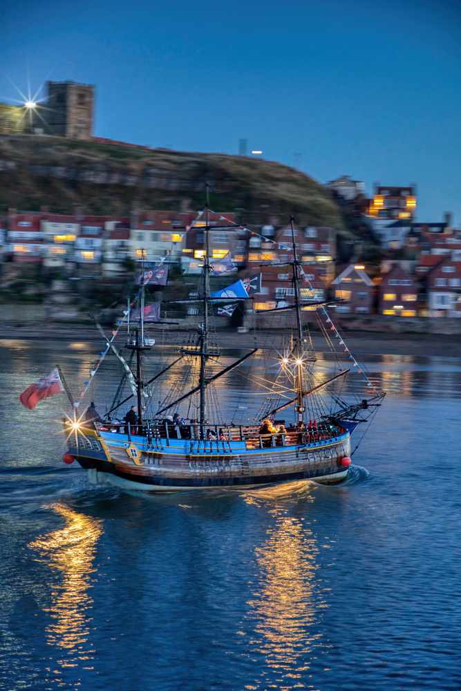 That Friday evening, some visited the Larpool viaduct just by the hotel, then en masse we descended on Whitby. We stopped at various locations to catch the night lights from the Whitby New bridge (very original name eh), and then down by the harbour.