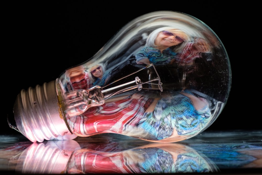 So, we set-up a very Heath-Robinson studio on the floor of the clubhouse using a cushion as a backdrop to take a few images of a rose. All this being projected in real time.