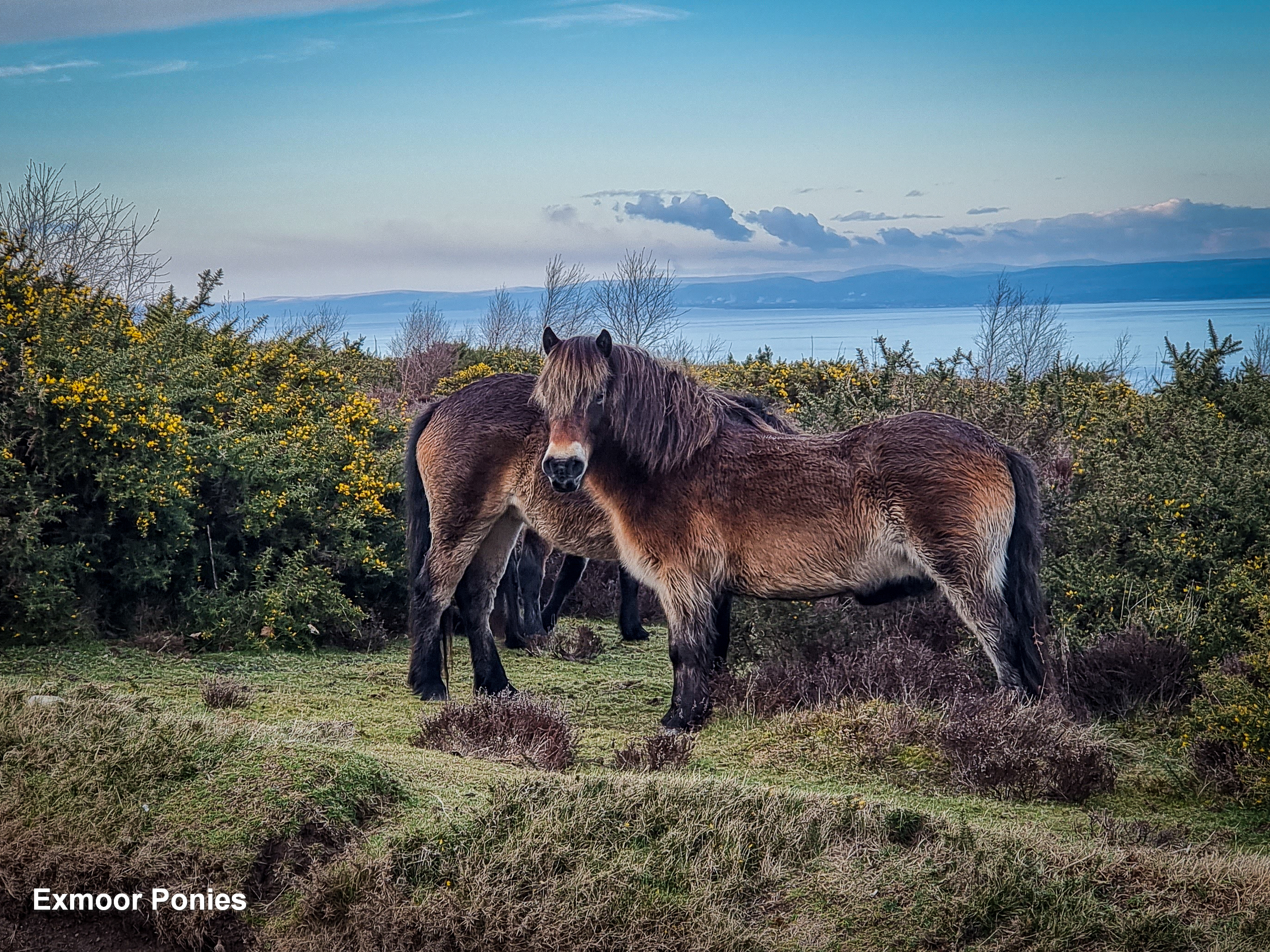 Tuesday morning and its subsequent forecast indicated rain. After breakfast we all headed to the village of Porlock Weir, spending a couple of hours enjoying the pebbled beach, old wooden groynes, pretty cottages and houses, and a low tide harbour. From there we ventured up to the edge of Exmoor as the rain turned into snow and the clouds descended all around us. We met at County Gate car park off the A39 in mist but within minutes the sky cleared to reveal Doone Valley landscape and views out to the coast. Linda, Chris and Moy spotted a strange orange fungus on gorse and Kevin snapped a wild ram, whilst others took in the beauty of a variety of trees resplendent in the ever changing light. What started as a perceived whiteout ended up being a couple of productive and interesting hours.