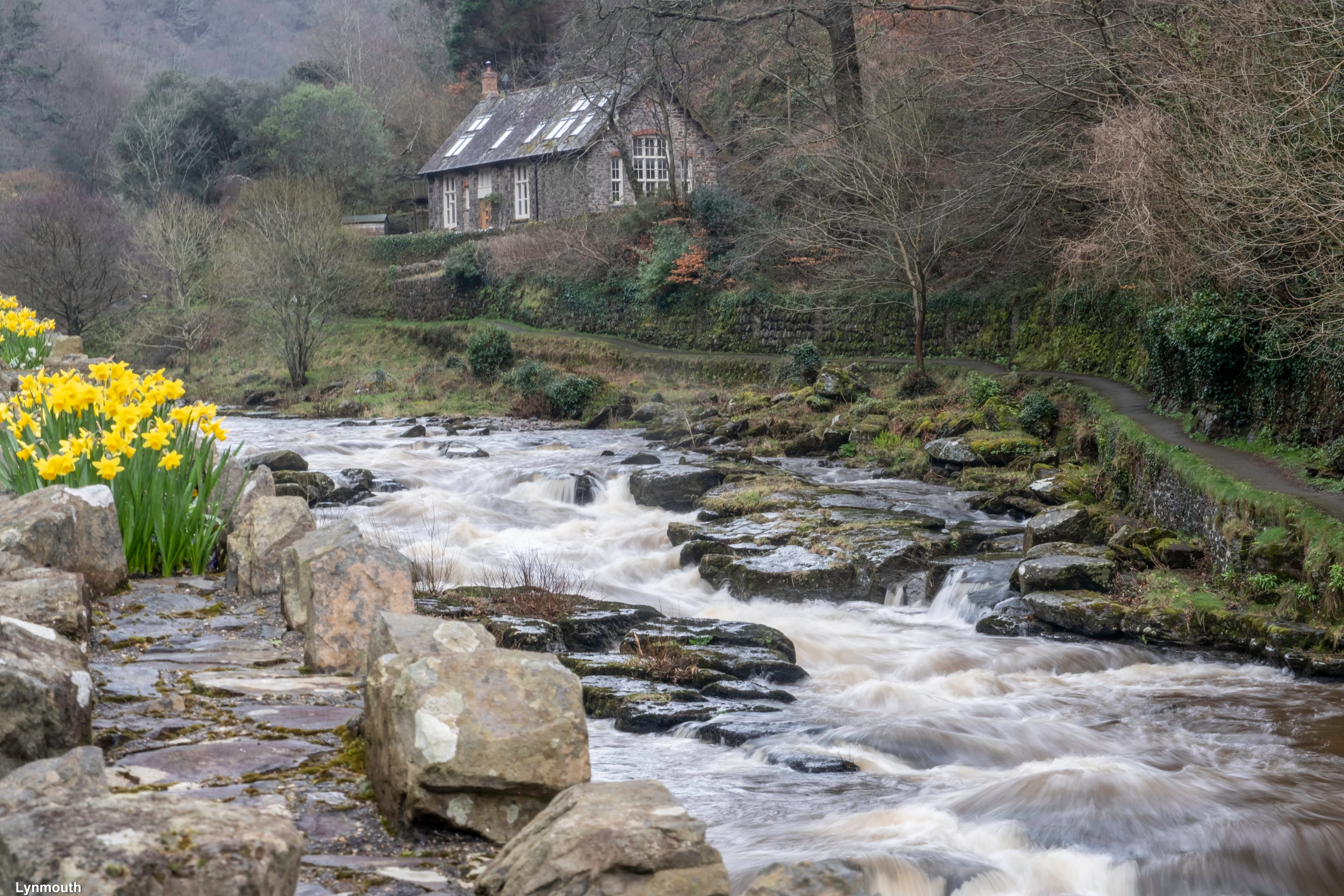 Thursday promised better weather and although we were peppered with showers in between blue sky and cloud formations we visited the village of Lynmouth where the harbour and cottages are overlooked by the famous cliff railway which several of the team experienced. With all the recent rain the river was flowing torrentially and provided slow shutter moving water photography options.