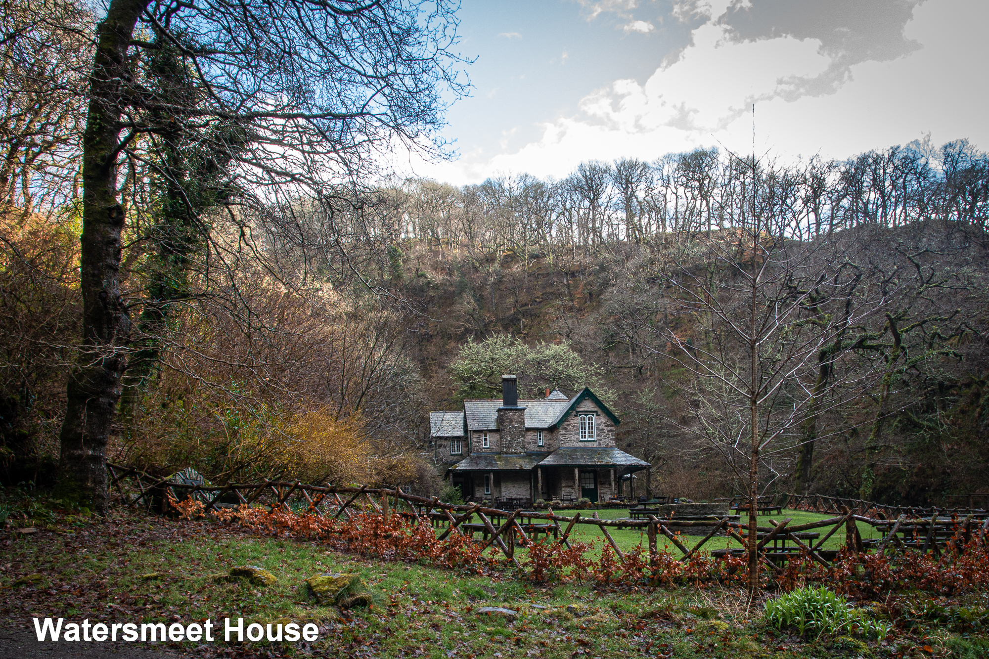 From Lynmouth we all headed to the Valley of the Rocks which provided magnificent views of the coastline, with cliff edges enhanced by yellow gorse and wild (and frisky) goats. As we finished lunch the rain came again so some retired for the day whilst a hardy handful drove to Watersmeet and took the windy path down to (you’ve guessed it) where two rivers meet by a tea room. After sheltering from the rain (except David B who’d thought to bring an umbrella) the sun burst through and gave the opportunity to capture some beautiful light on moving water and green trees.