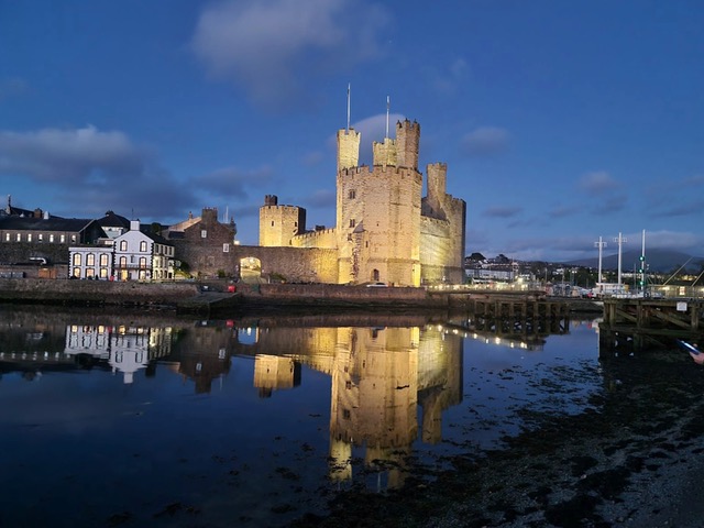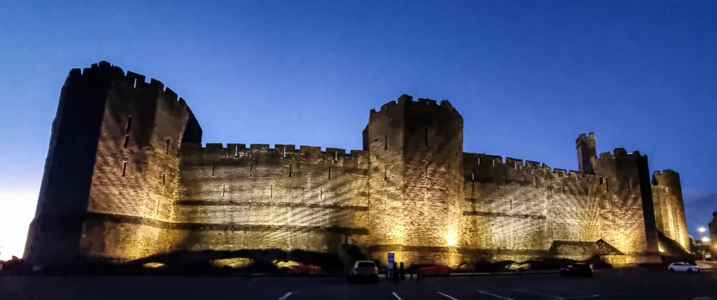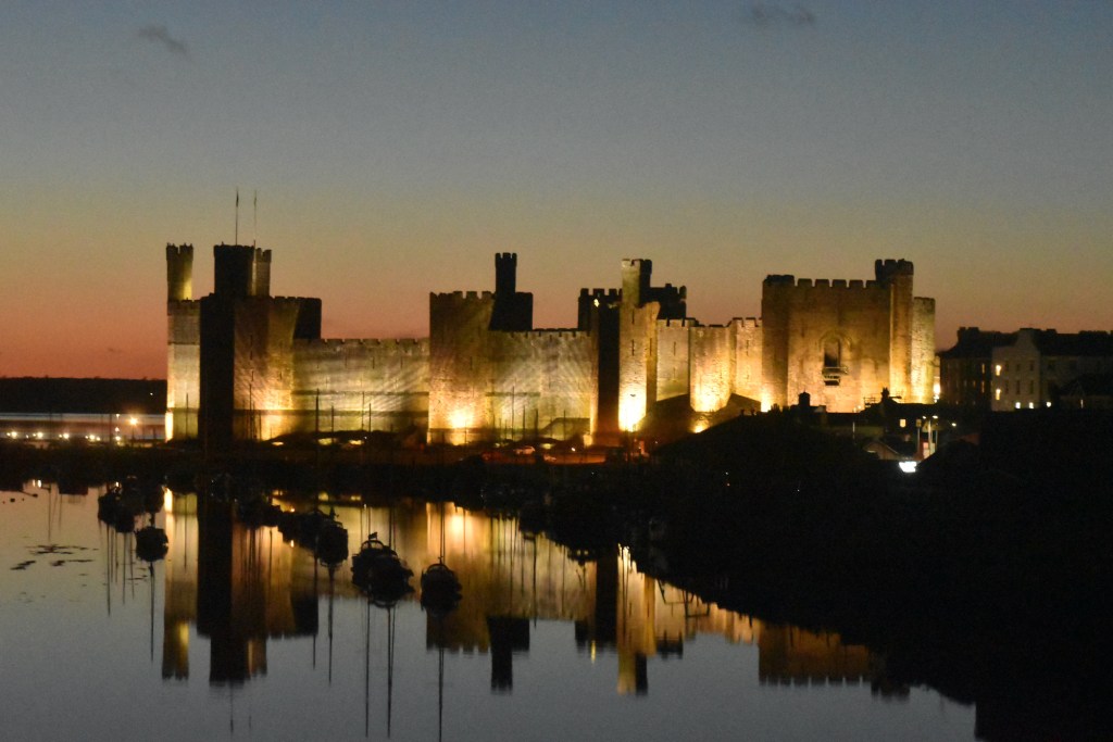 Two cars arrived in Caernarfon whilst the Gilbert Crew deviated via Porth Madoc (more trains) and after the disappointment of not being able to walk across the footbridge over the river (closed due 1 week’s maintenance!) most of the party enjoyed the view across the estuary and waited for the sunset.