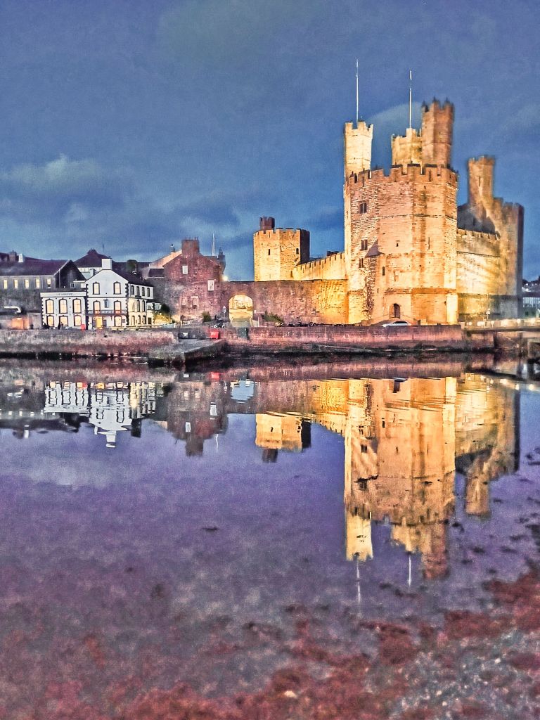 When we arrived at Tanybwlch Rail Station it was a mad rush as the next (and hourly) steam train could be heard trudging up the steep slope to its next stop. Finding a location without too much clutter, getting the right settings and avoiding photographing each other in the shot was quickly achieved as the steam engine entered the station and treated us to a steam plumage! Five minutes later it was gone and we settled down in the tea room for the next arrival. Better prepared this time we were thrilled to see the engine was called ‘Linda’ which of course triggered some photos of our Linda posing next to the engine. And then it was gone and time to move on to Caernarfon for evening shots of the castle…well, not quite everyone as Dave, Martin and Linda drove to Porth Madoc for more shots at a different station (Dave really does enjoy his trains!).