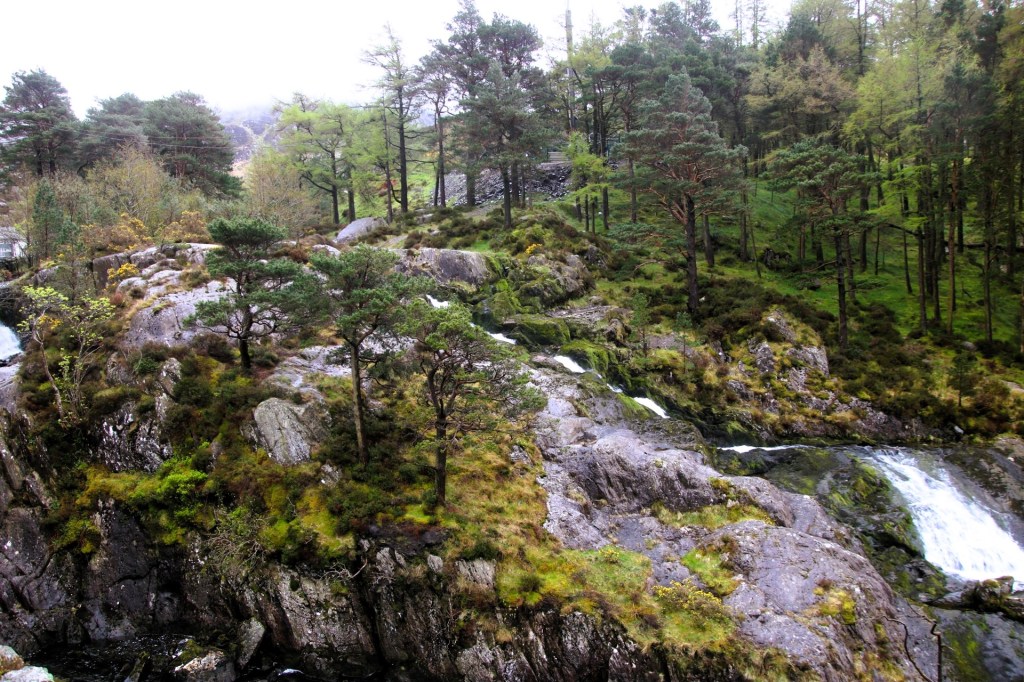 Sadly, the morning was a bit bleak as we left The Slate hotel, but as drove a few miles down the A5 there were better signs. The Falls were not for everyone, being a bit of scramble across rocks but the tumbling water was attractive and worth the look. Next, we all headed up the valley towards the Llyn (lake). Again, not for the unfit, but a lovely walk and the lake itself is stunning and by this time blue sky was making an appearance.